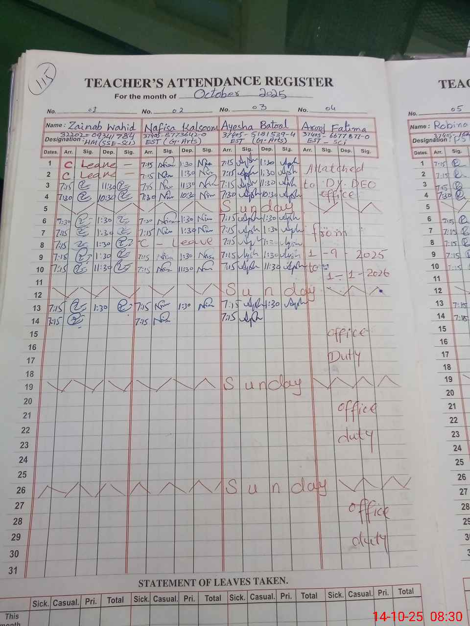 | Leave | Duty | Absent | Maternity | Medical | Ex- Pak |