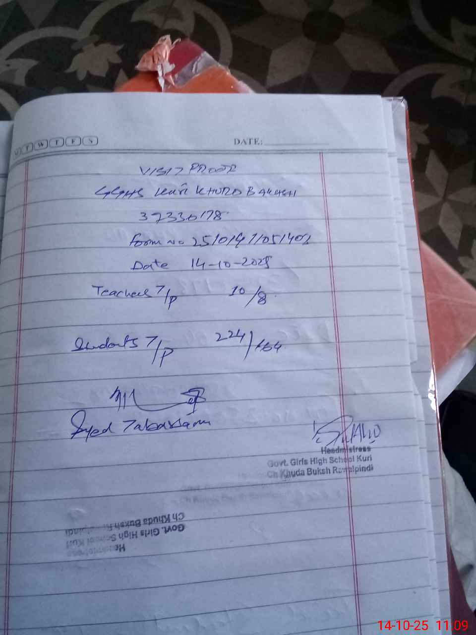 | EMIS Code: 37330178 | Name of School: GGHS KURI KHURD BAKHSH | |||