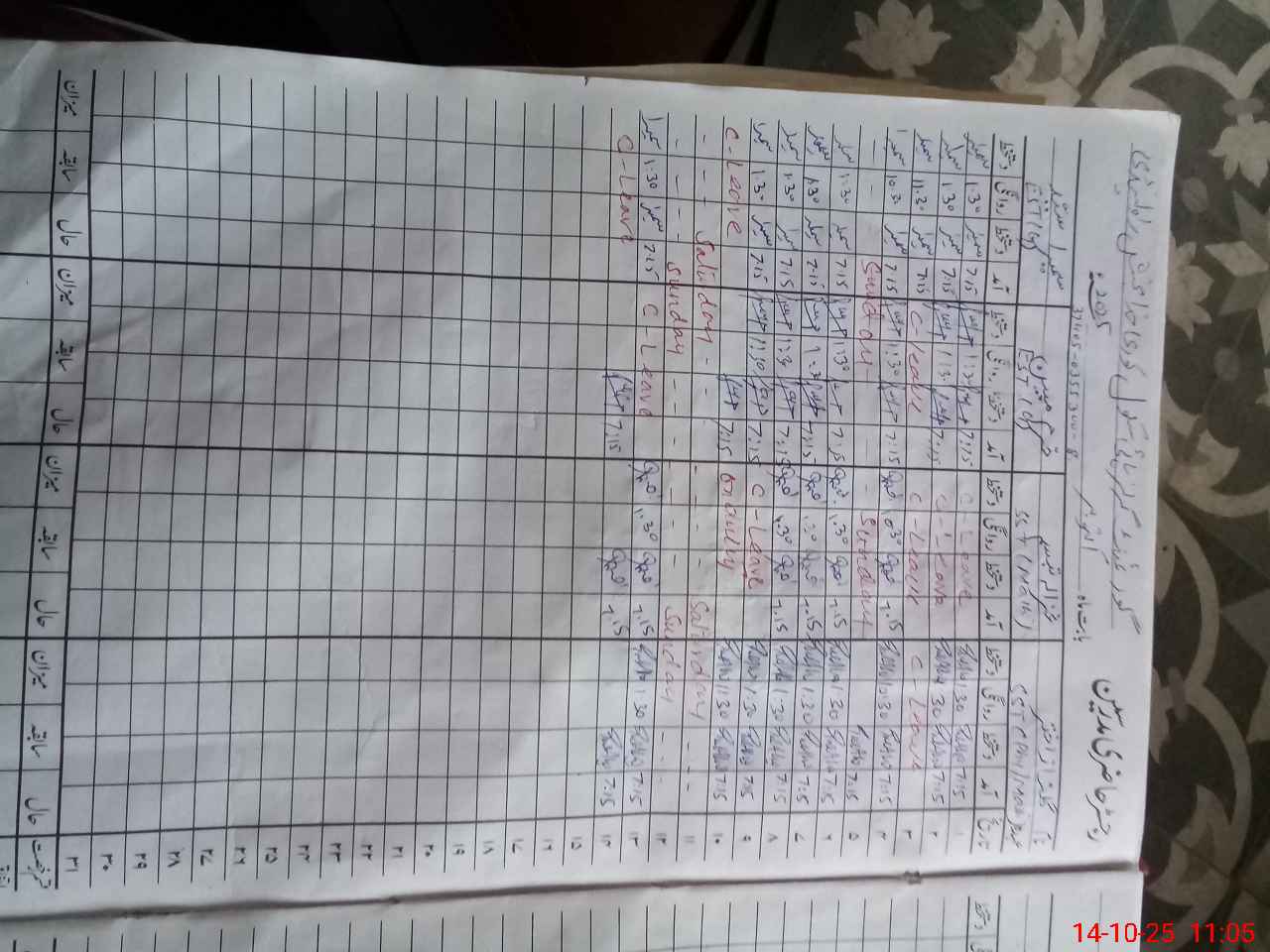 | CNIC | Full Name | Designation | R/C | Absence During Last Calender Month |
