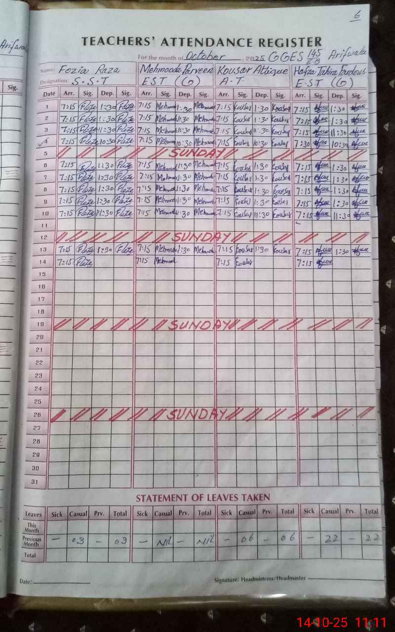 | Name: FO**** RA**** Designation: (School Headmaster's/Headmistress's) S.S.T.(GENERAL) Phone/Cell Number: 03**** |