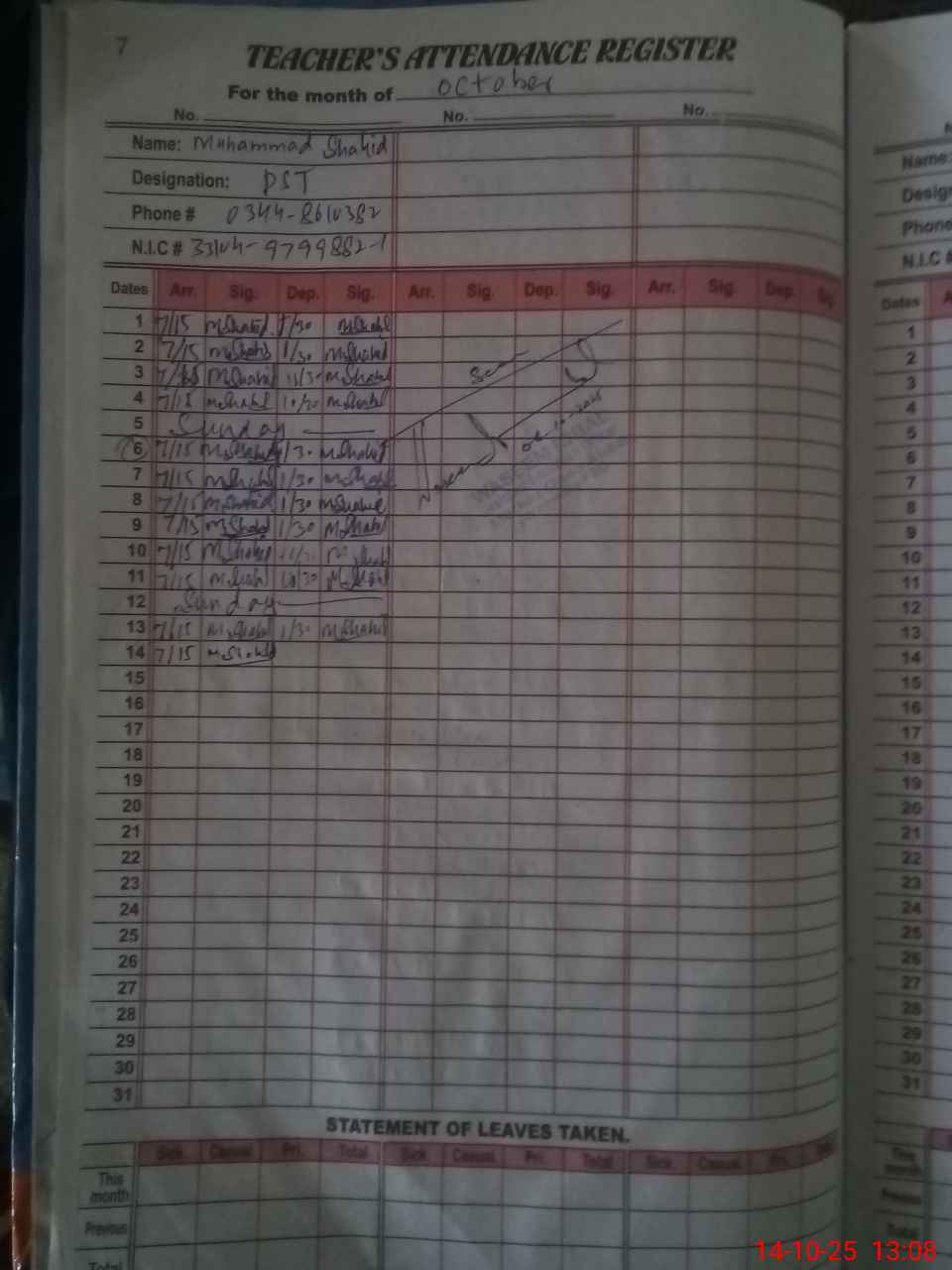 | Name: KA**** AL**** AK**** Designation: (School Headmaster's/Headmistress's) PST Phone/Cell Number: 03**** |
