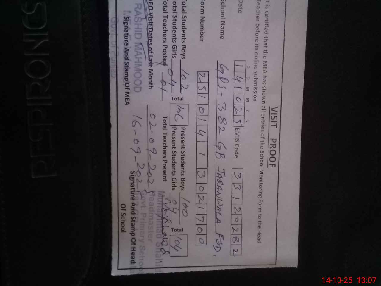 | Certified that this School was Inspected by the Undersigned MEA/DMO Today and the Information Stated Above is as Per Record. | |||||