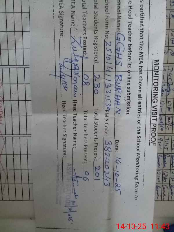 | EMIS Code: 38220243 | Name of School: GGHS BURHAN | |||