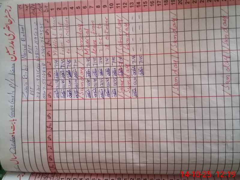 | Remarks (Use Separate Page if Required): Nusrat Batool PST GGPS KAKA Medical Leave was till 6 Oct 2025 | |||||