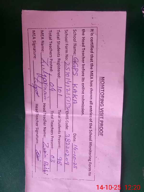 | EMIS Code: 38220209 | Name of School: GGPS KAKA | |||