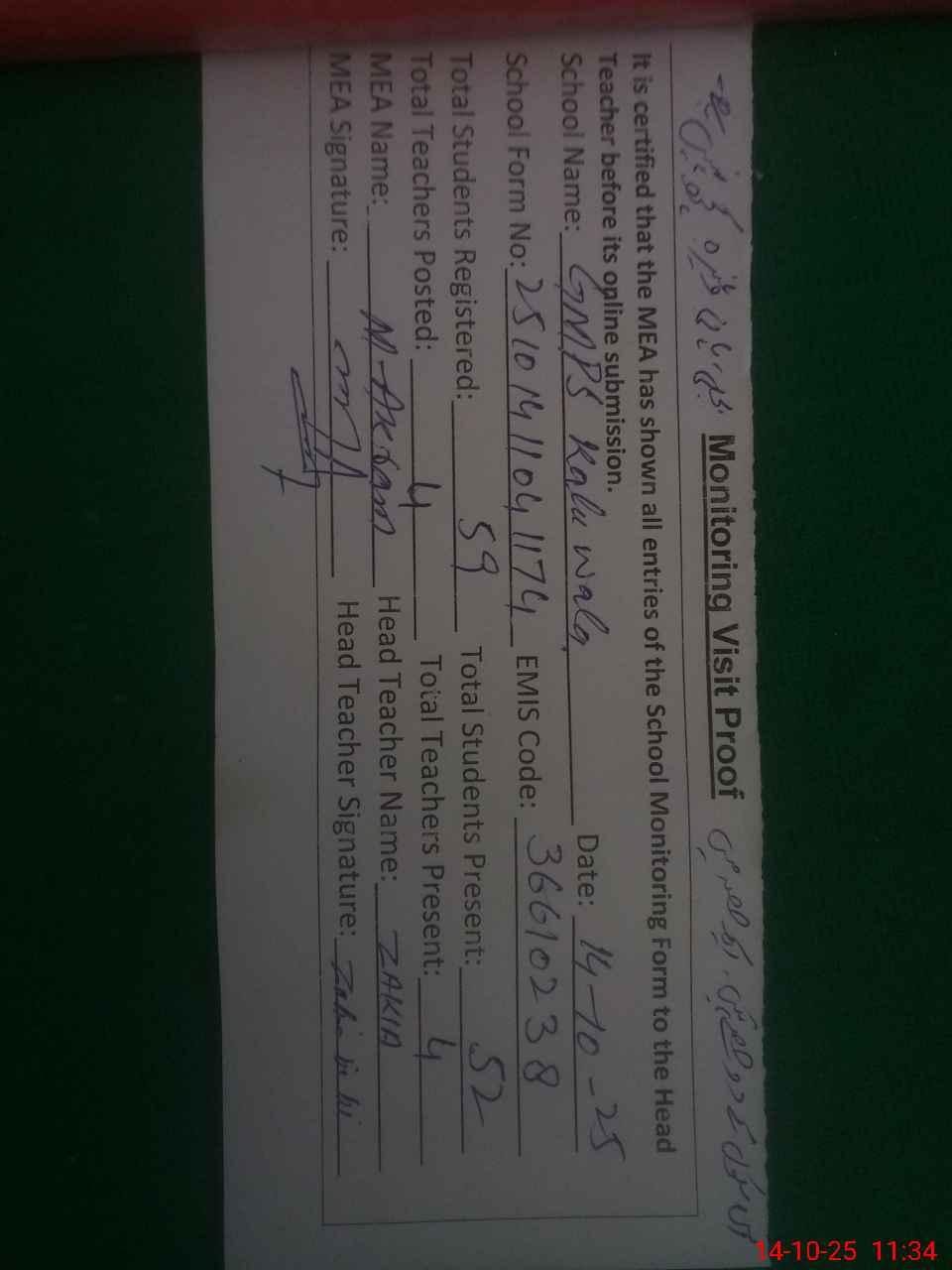 | EMIS Code: 36610238 | Name of School: GMPS KALU WALA | |||