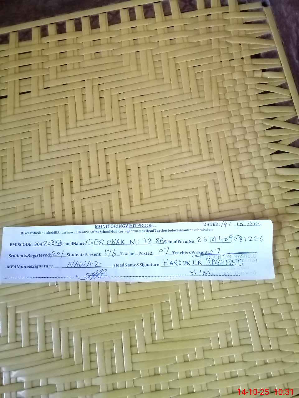 | Certified that this School was Inspected by the Undersigned MEA/DMO Today and the Information Stated Above is as Per Record. | |||||