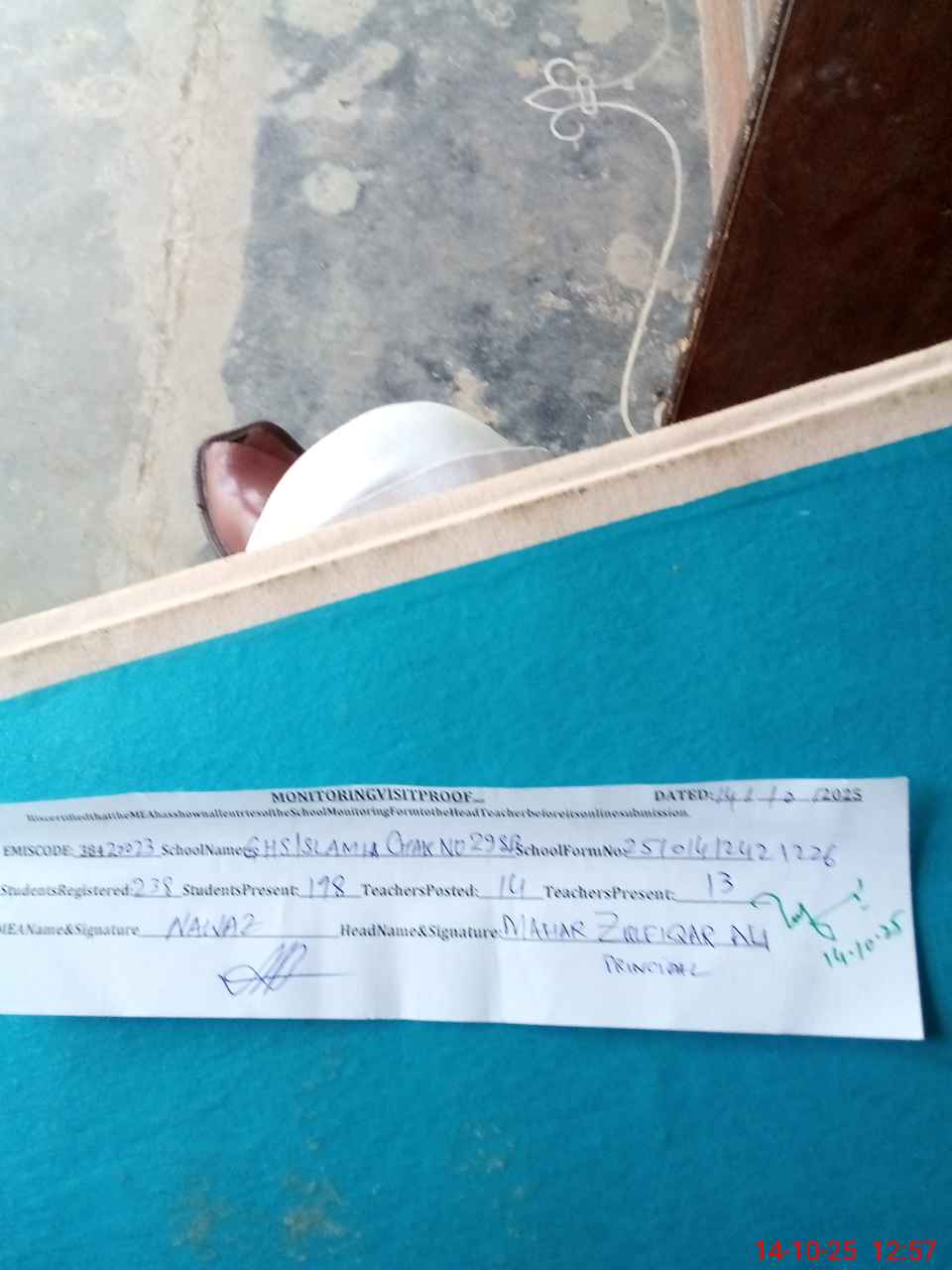 | Attendance Register | Head Teacher | MEA with School | Visit Proof |