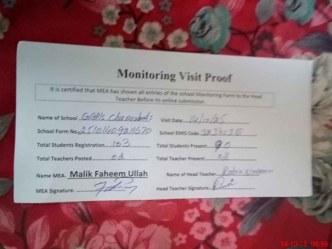 | EMIS Code: 32340318 | Name of School: GGPS CHUNOO ABAD | |||