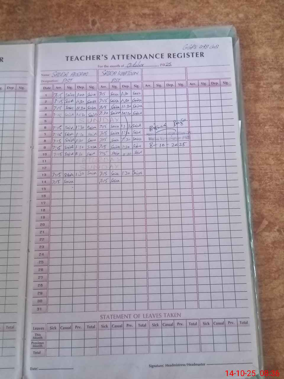 | Name: SA**** AK**** Designation: (School Headmaster's/Headmistress's) PTC Phone/Cell Number: 03**** |