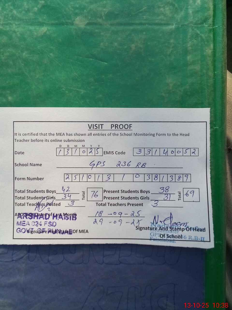 | EMIS Code: 33140052 | Name of School: GPS 236 RB II | |||