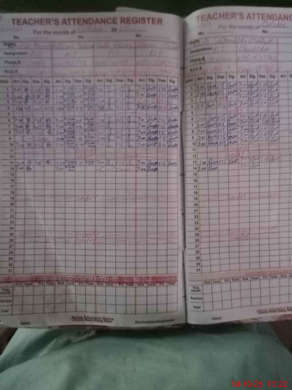 | Name: KH**** PE**** Designation: (School Headmaster's/Headmistress's) PST Phone/Cell Number: 03**** |