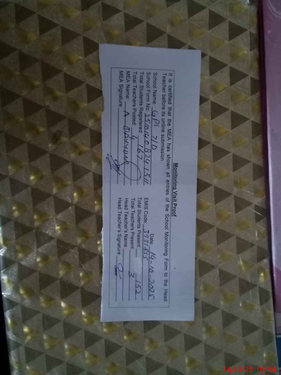 | EMIS Code: 39310855 | Name of School: GPS CHAK 7/D | |||