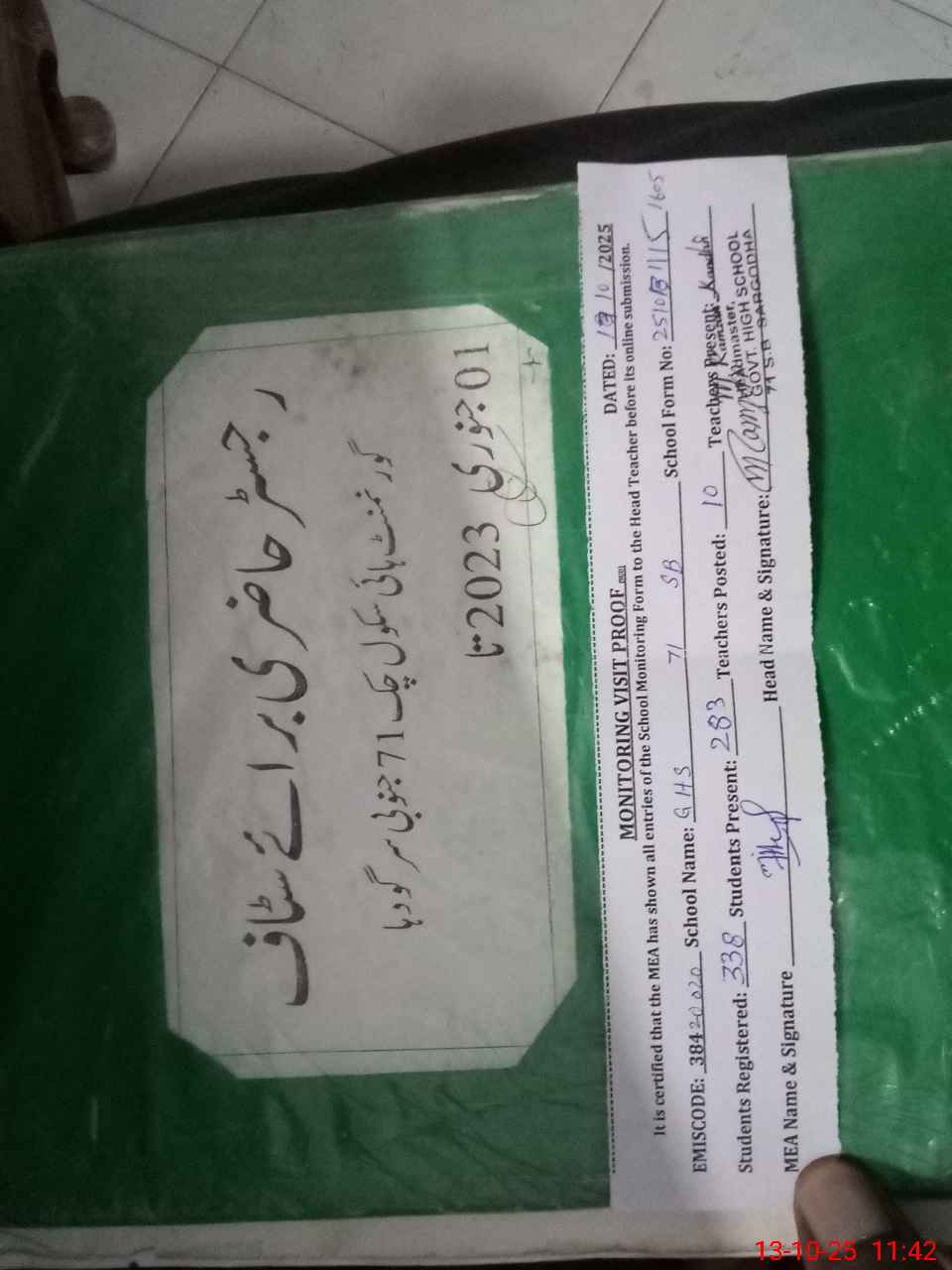 | EMIS Code: 38420020 | Name of School: GHS CHAK NO.71 SB | |||