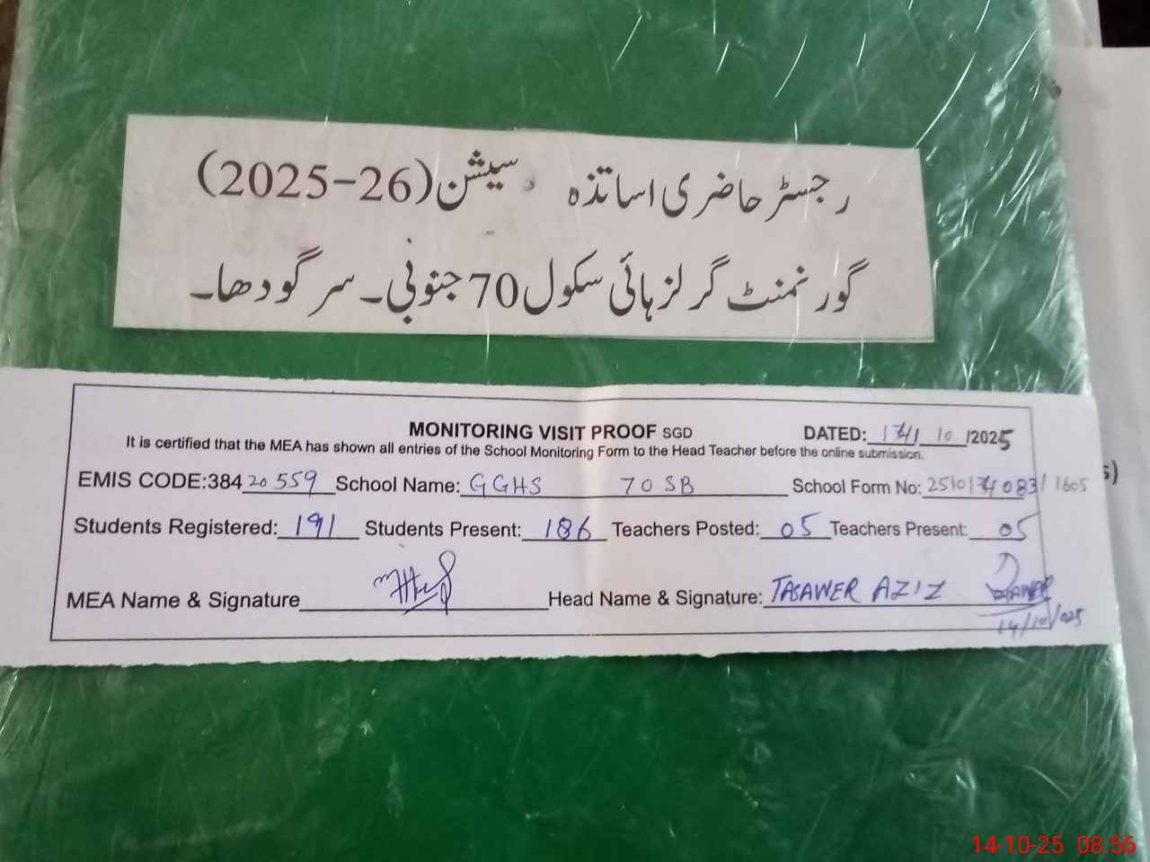 | Attendance Register | Head Teacher | MEA with School | Visit Proof |