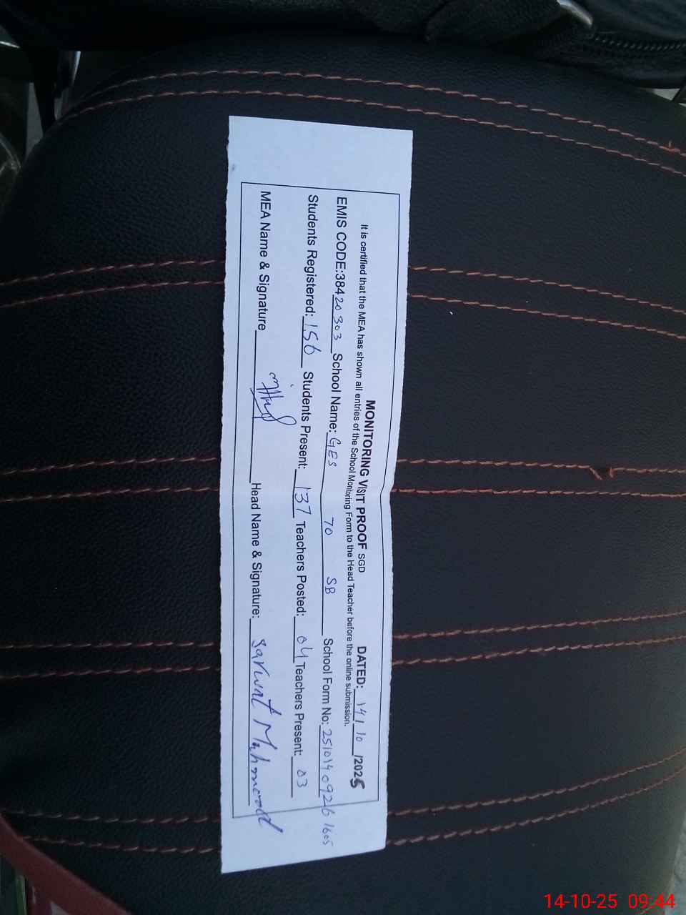 | EMIS Code: 38420303 | Name of School: GES CHAK NO.70 SB | |||