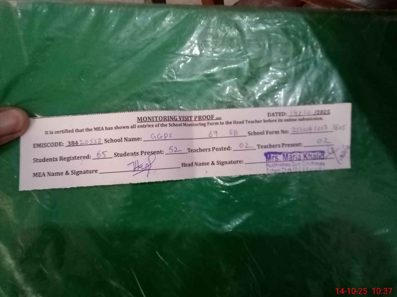 | EMIS Code: 38420558 | Name of School: GGPS CHAK NO.69 SB | |||