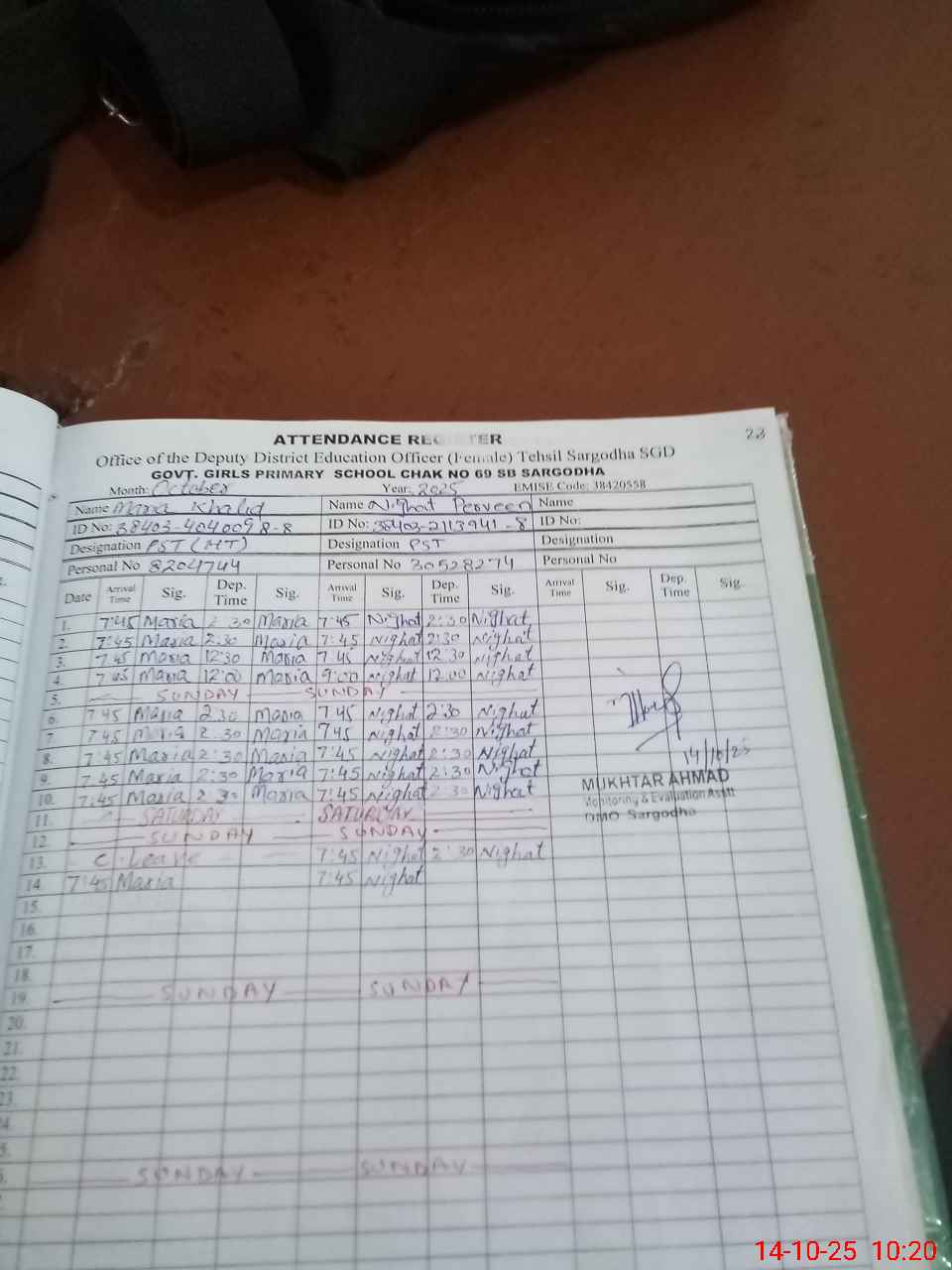 | Name: MA**** KH**** Designation: (School Headmaster's/Headmistress's) PST Phone/Cell Number: 03**** |
