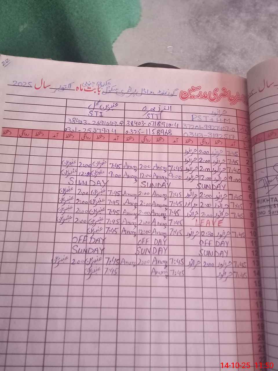 | Remarks (Use Separate Page if Required): Anam Zahra and Ambreen Gul are working as STIs and present today | |||||