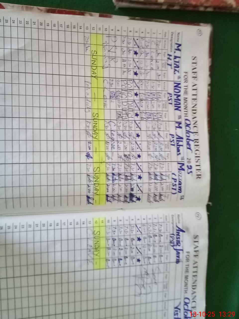 | CNIC | Full Name | Designation | R/C | Absence During Last Calender Month |