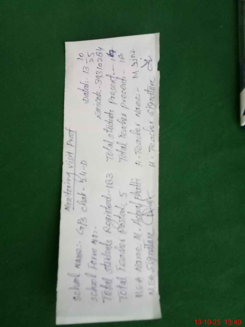 | Attendance Register | Head Teacher | MEA with School | Visit Proof |