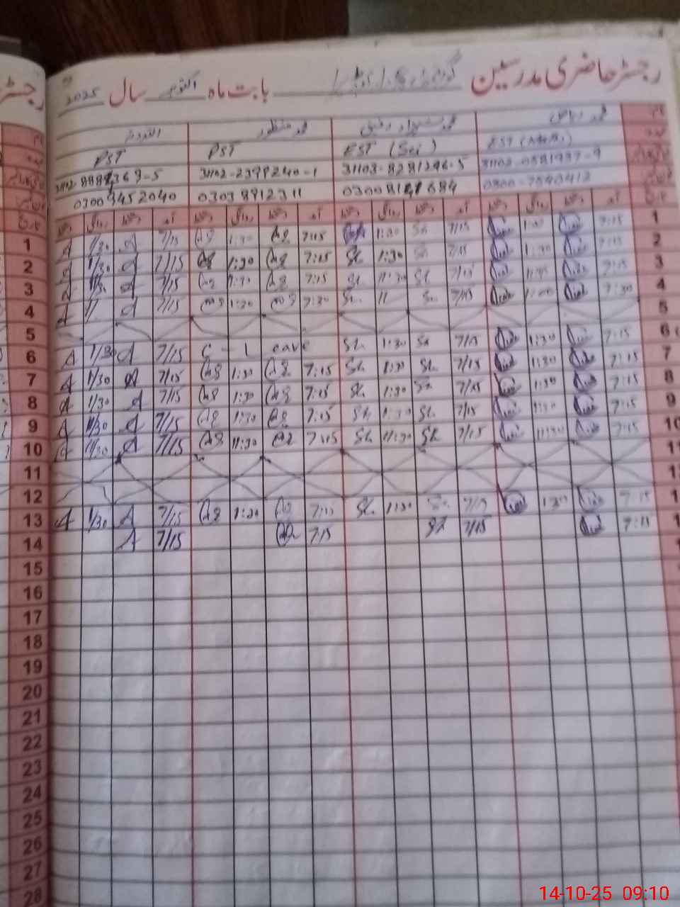 | CNIC | Full Name | Designation | R/C | Absence During Last Calender Month |