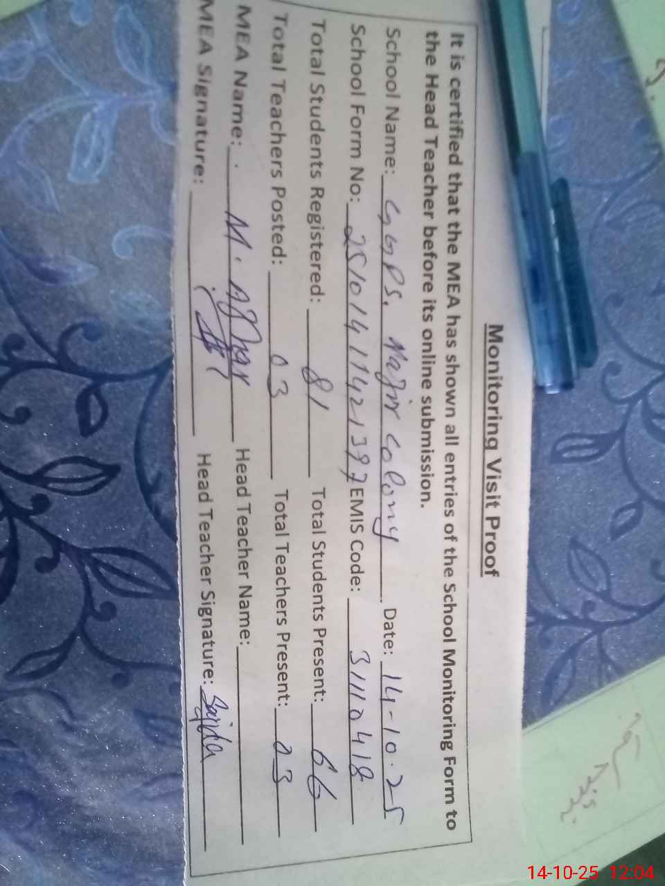 | Certified that this School was Inspected by the Undersigned MEA/DMO Today and the Information Stated Above is as Per Record. | |||||