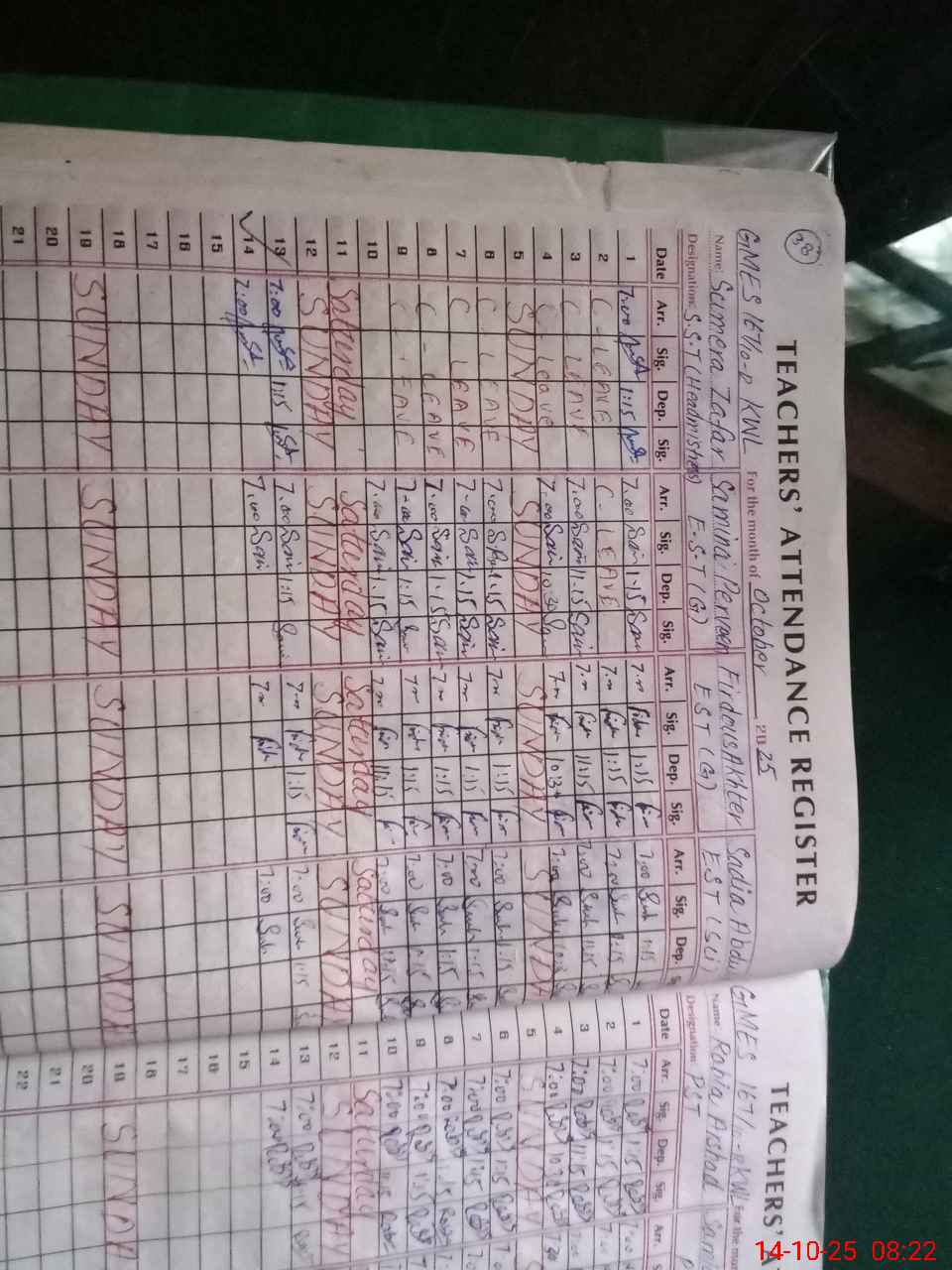 | CNIC | Full Name | Designation | R/C | Absence During Last Calender Month |