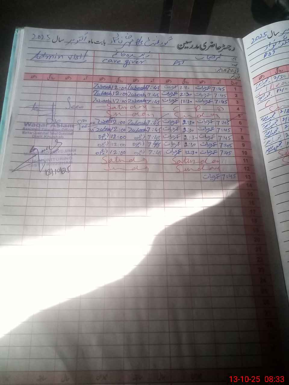 | Monitoring Date: 13-10-2025 | Start Time: 13-10-2025 08:27 AM | End Time: 13-10-2025 08:34 AM | Name of MEA: MU**** SA**** | |