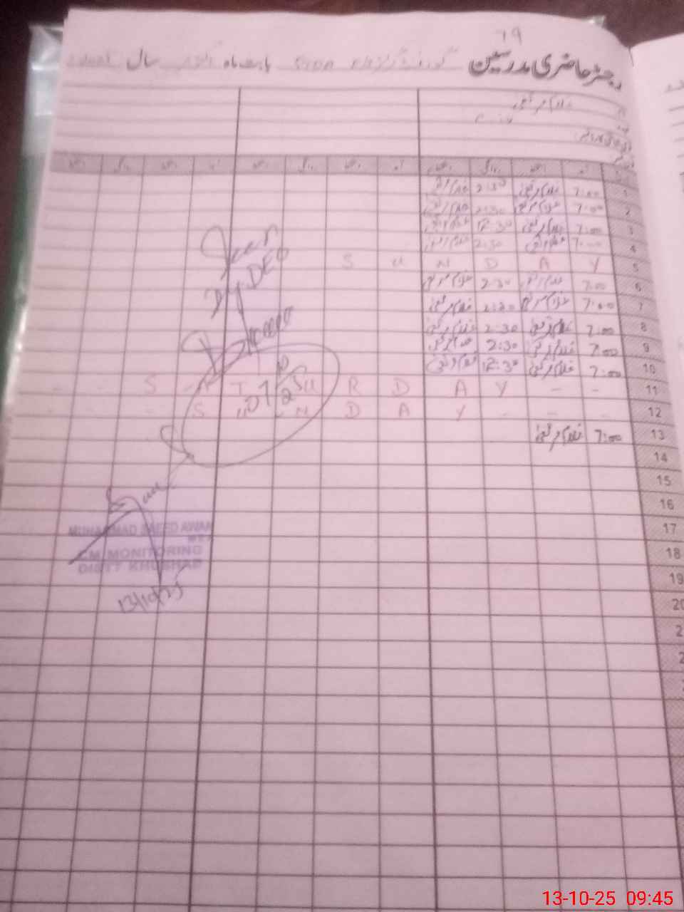 | CNIC | Full Name | Designation | R/C | Absence During Last Calender Month |