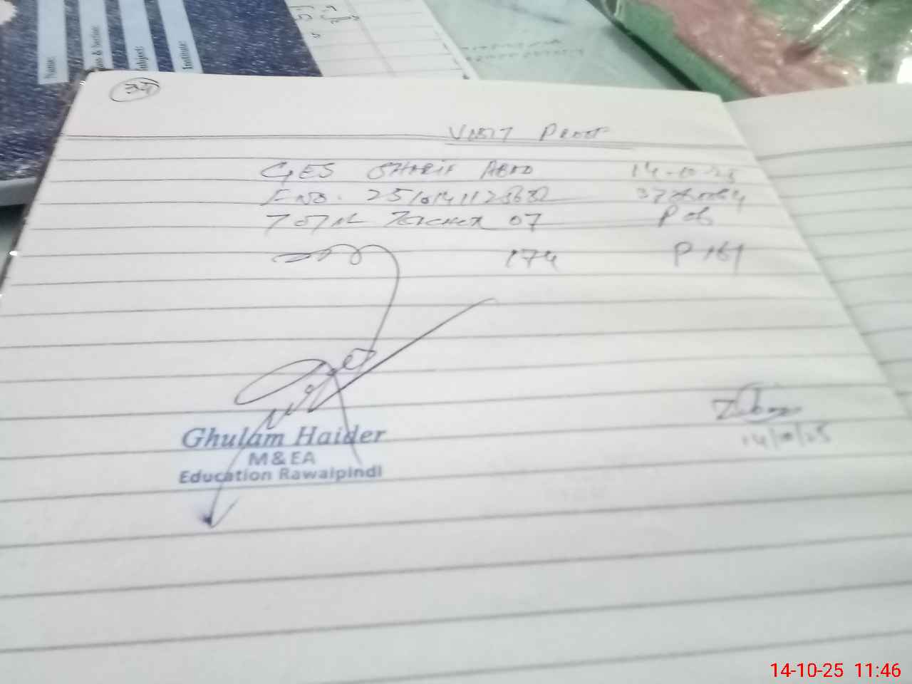 | Name: Zu**** Ah**** Designation: (School Headmaster's/Headmistress's) EST (G) Phone/Cell Number: 03**** |