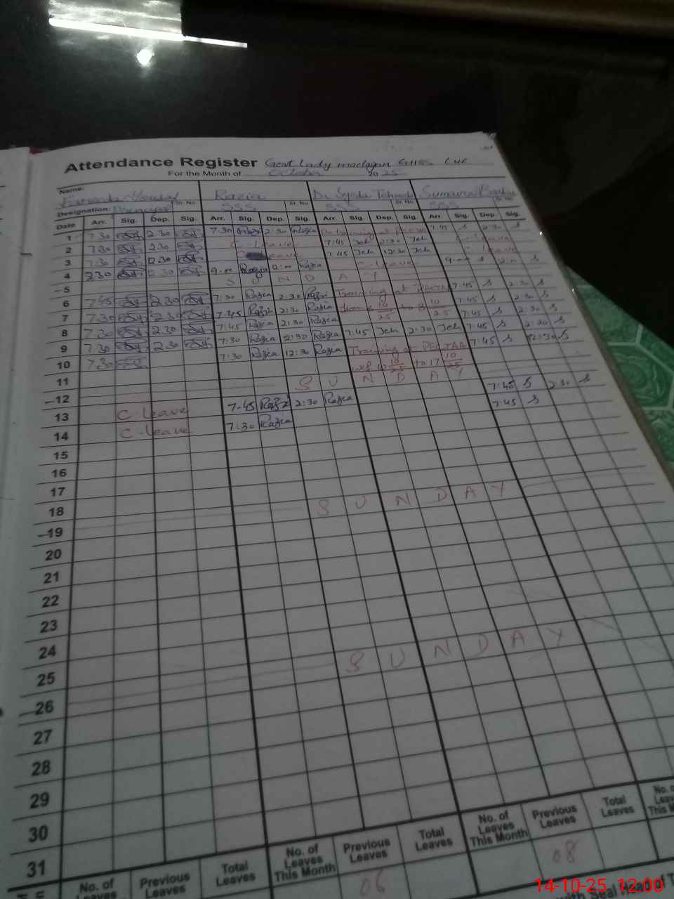 | 31**** | Sa**** No**** | 3 | 1 | 0 | 0 | 0 | 0 | 0 | 0 | 0 | 0 | 0 | Absent (Un-Authorized) |