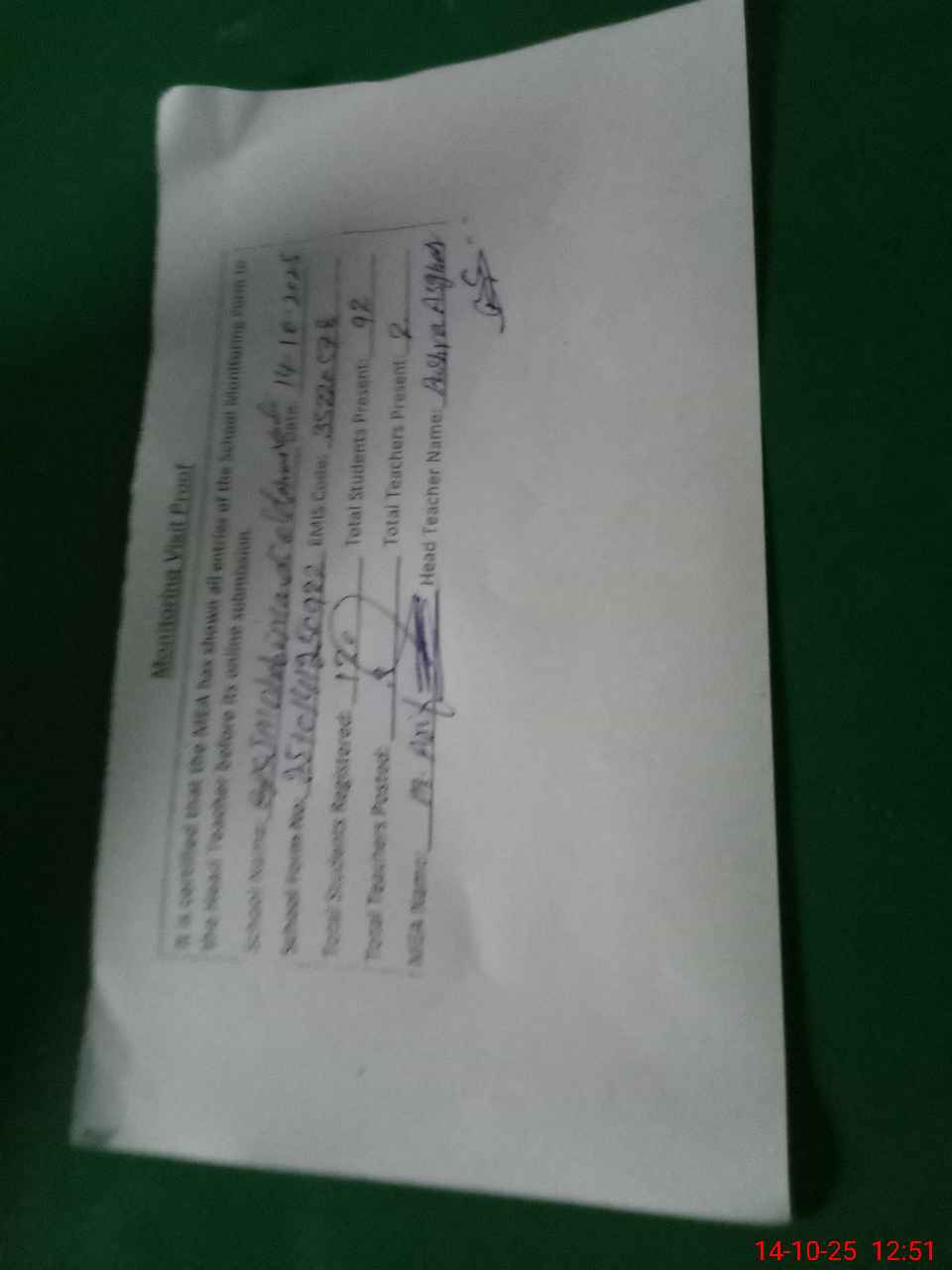 | Certified that this School was Inspected by the Undersigned MEA/DMO Today and the Information Stated Above is as Per Record. | |||||