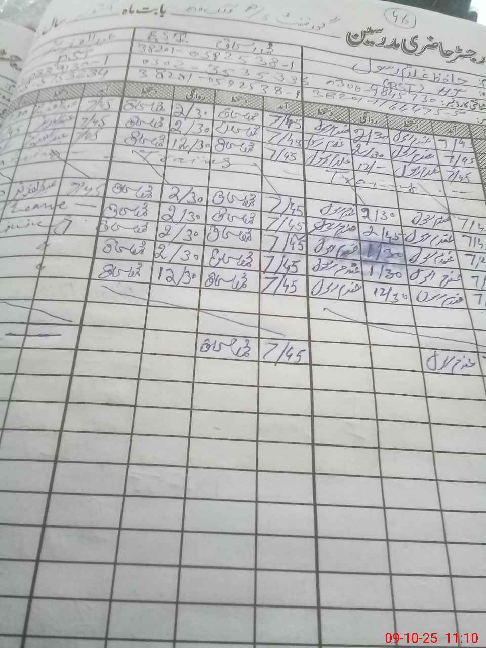 | CNIC | Full Name | Designation | R/C | Absence During Last Calender Month |
