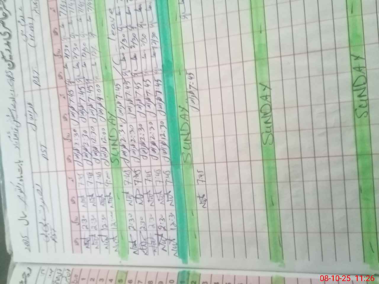 | Leave | Duty | Absent | Maternity | Medical | Ex- Pak |