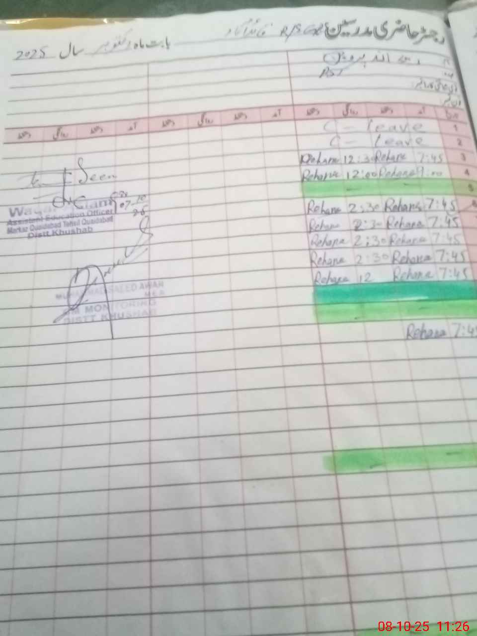 | CNIC | Full Name | Designation | R/C | Absence During Last Calender Month |