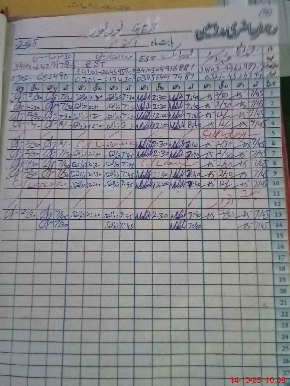 | 34**** | If**** Ah**** | PST | Regular | 0 | 0 | 0 | 0 | 0 | 0 | 0 | 0 | 0 | Exam Duty |