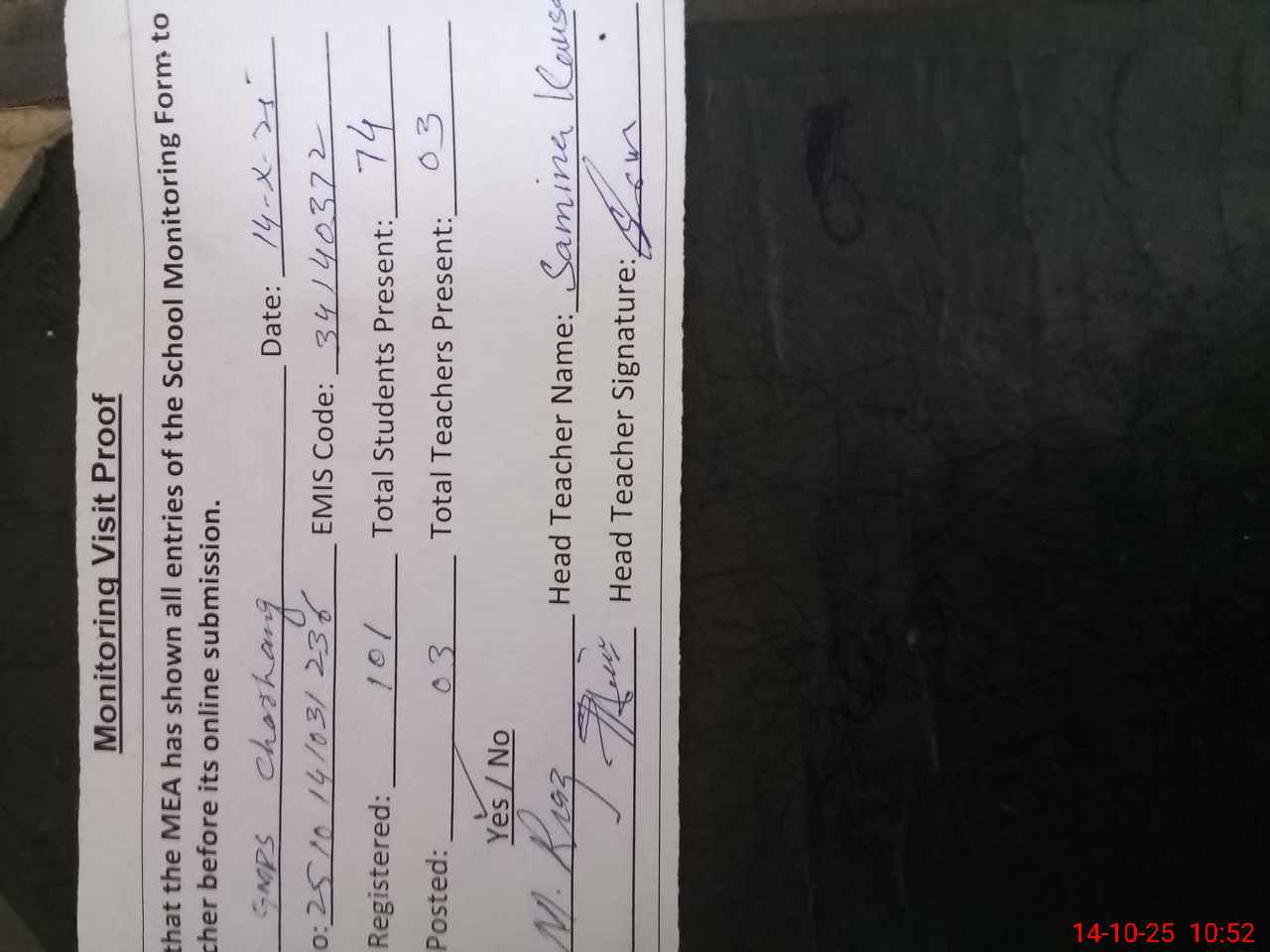 | Certified that this School was Inspected by the Undersigned MEA/DMO Today and the Information Stated Above is as Per Record. | |||||
