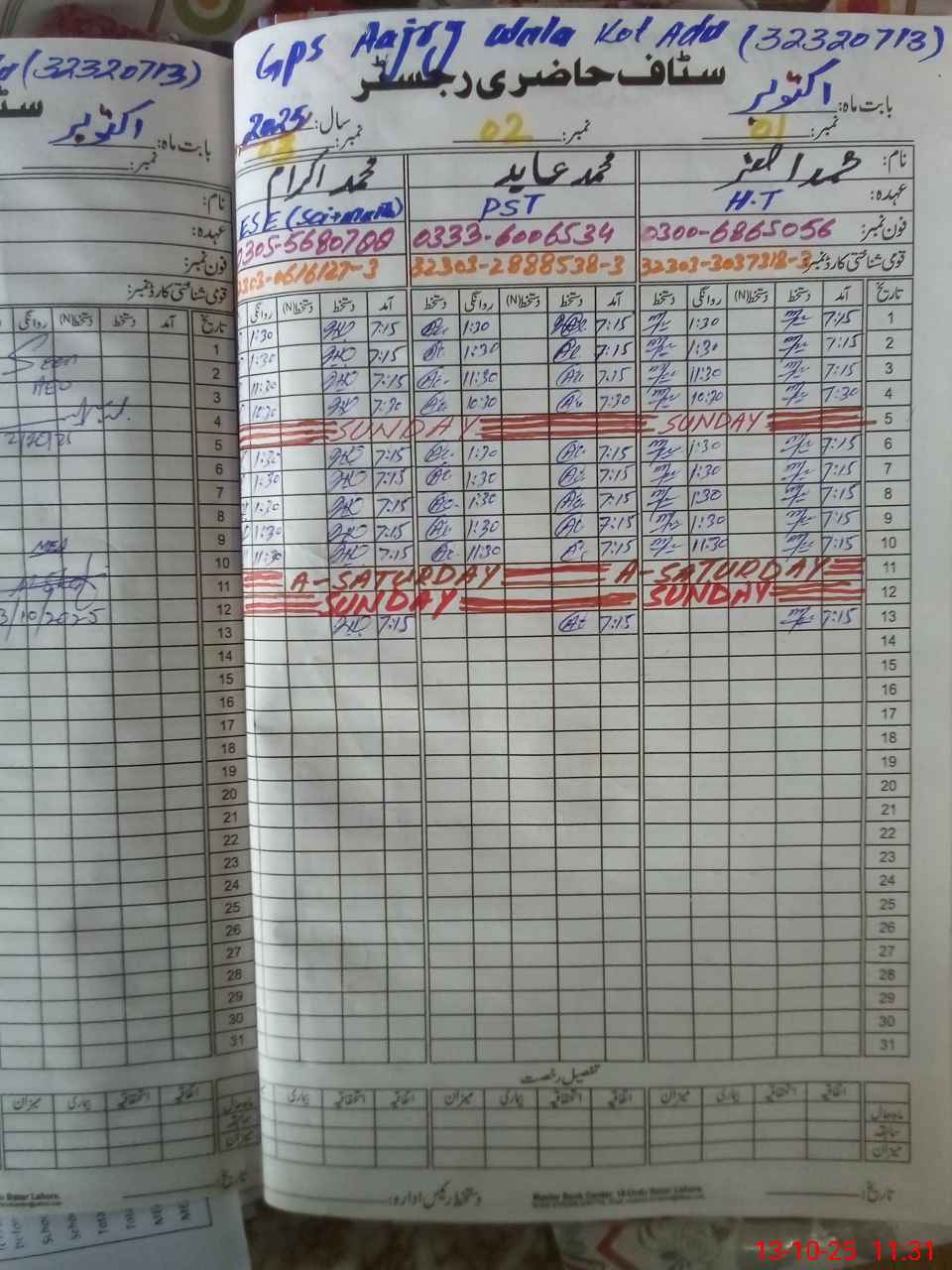 | Name: Mu**** Ab**** Designation: (School Headmaster's/Headmistress's) PST Phone/Cell Number: 03**** |