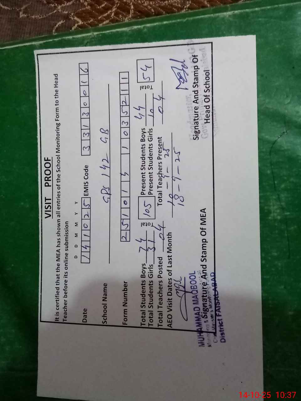 | EMIS Code: 33130016 | Name of School: GPS CHAK 142 GB SAMUNDRI | |||