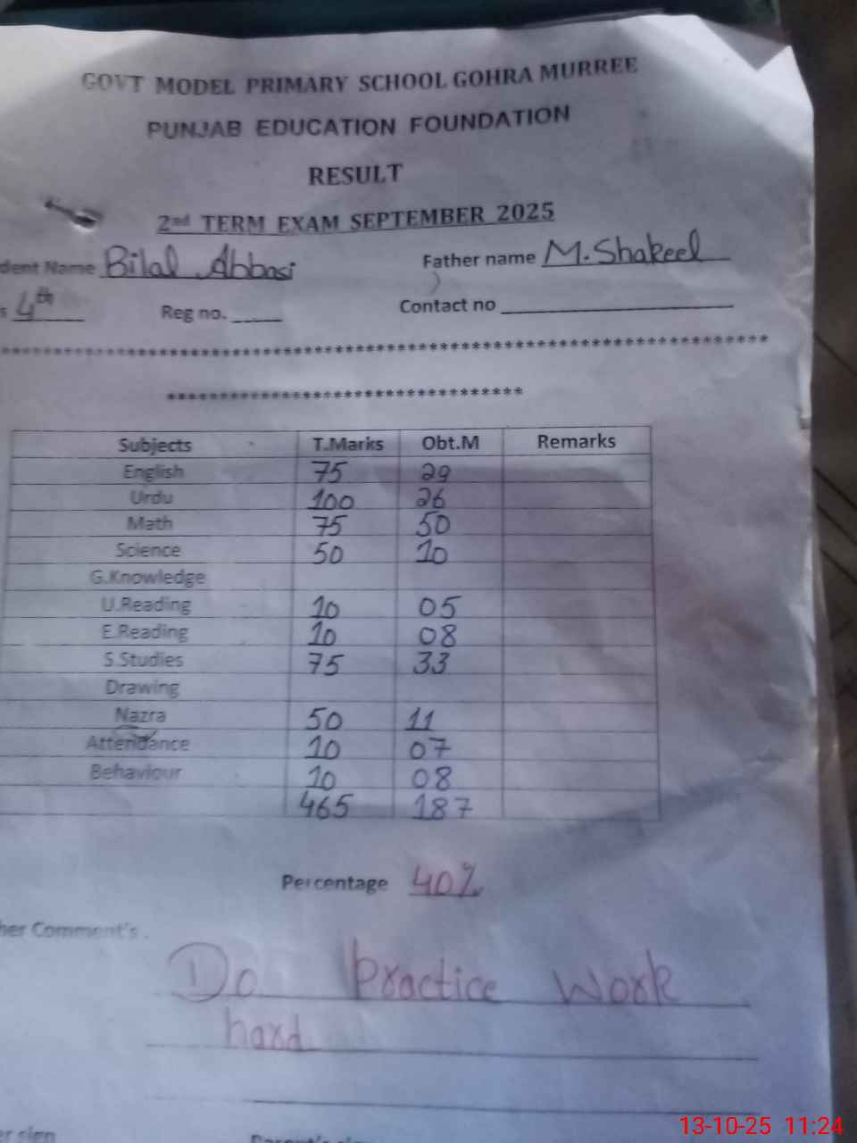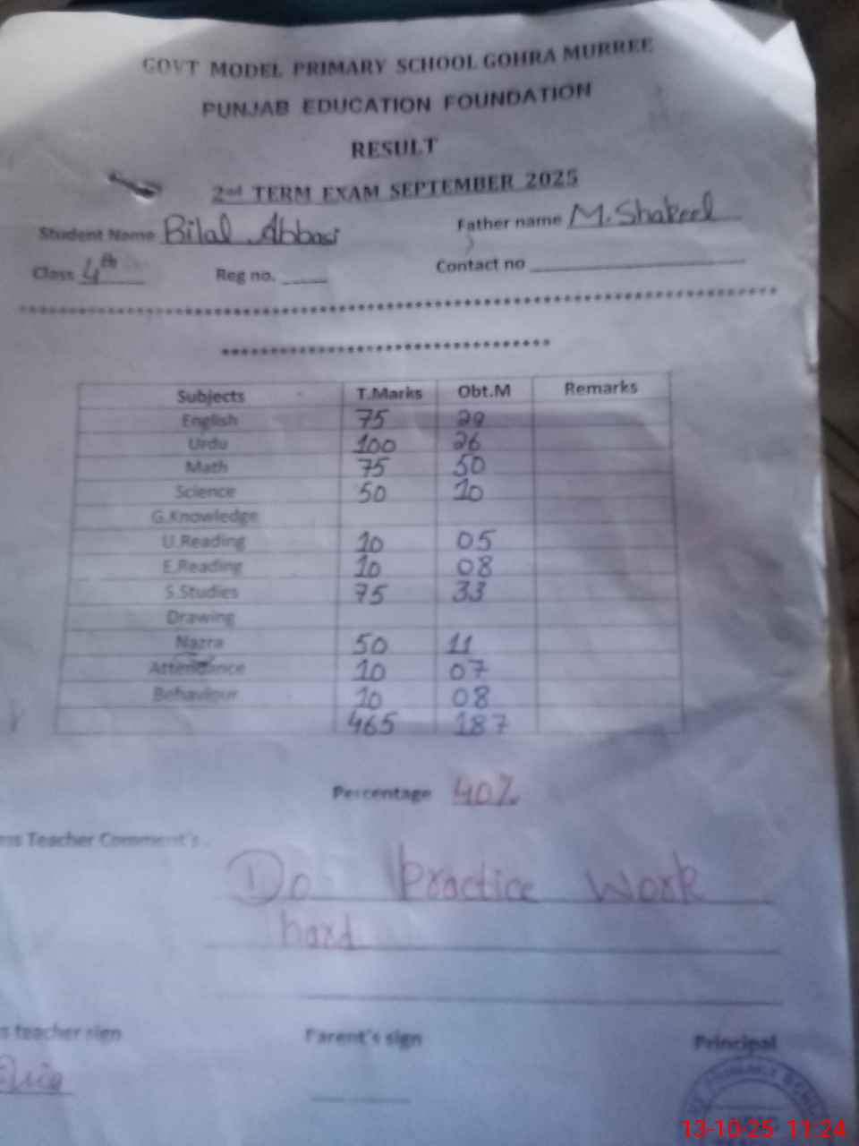| Name: NE**** SH**** Designation: (School Headmaster's/Headmistress's) PST Phone/Cell Number: 03**** |