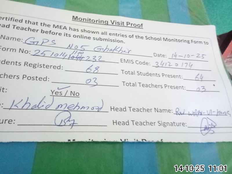 | EMIS Code: 34120174 | Name of School: GPS GHAKHAR NO.5 | |||
