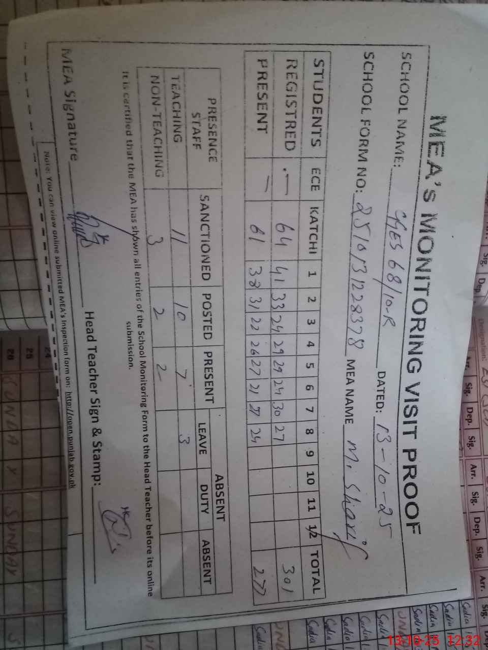 | Certified that this School was Inspected by the Undersigned MEA/DMO Today and the Information Stated Above is as Per Record. | |||||