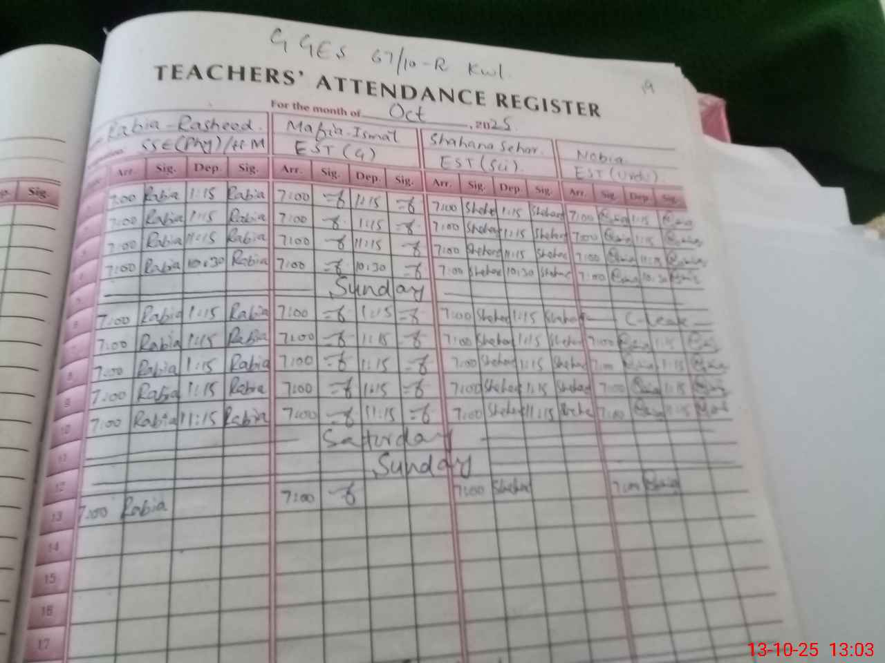 | Name: Ma**** Is**** Designation: (School Headmaster's/Headmistress's) EST (G) Phone/Cell Number: 03**** |