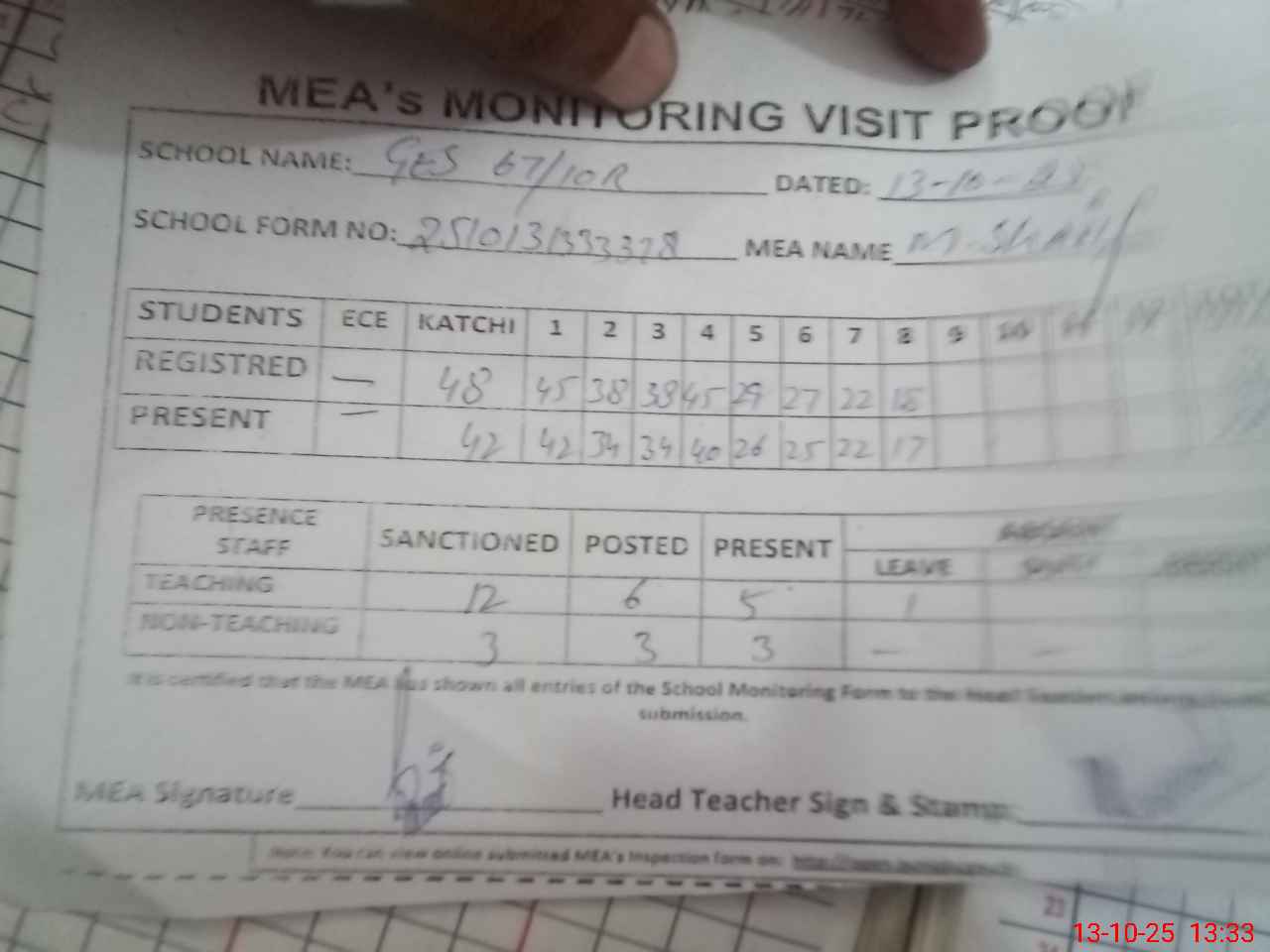 | Certified that this School was Inspected by the Undersigned MEA/DMO Today and the Information Stated Above is as Per Record. | |||||