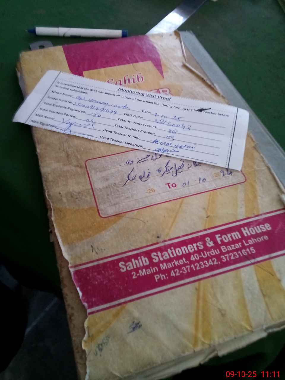 | Attendance Register | Head Teacher | MEA with School | Visit Proof |