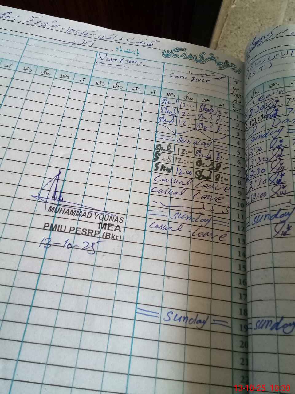 | CNIC | Full Name | Designation | R/C | Absence During Last Calender Month |