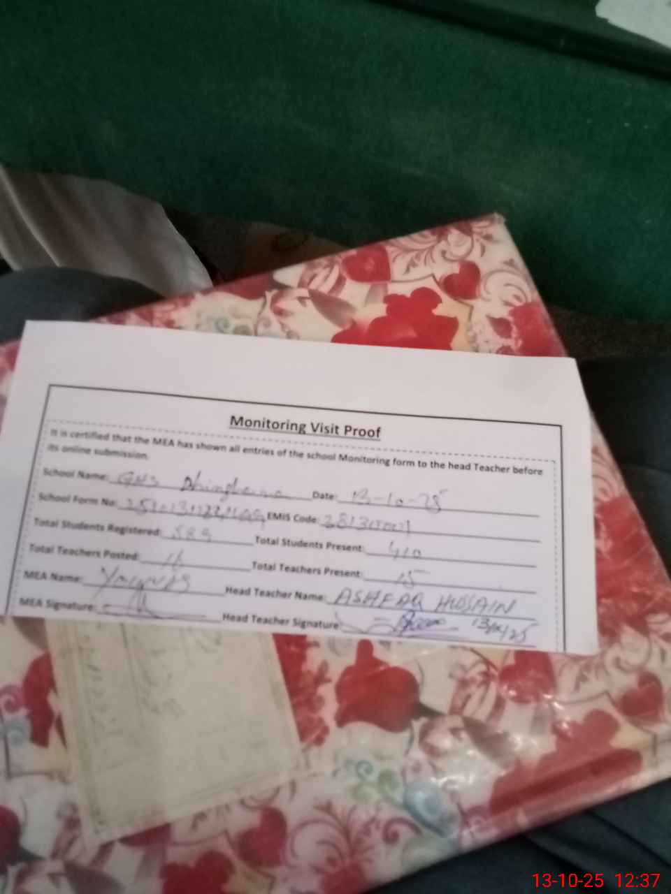 | EMIS Code: 38130001 | Name of School: GHS DHINGANA | |||