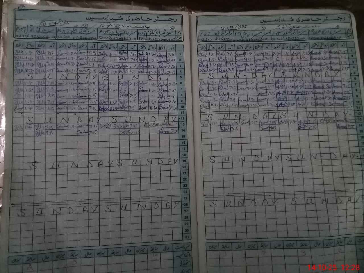 | 32**** | Sa**** Ra**** | PST | Regular | 0 | 0 | 0 | 0 | 0 | 0 | 0 | 0 | 0 | Exam Duty |