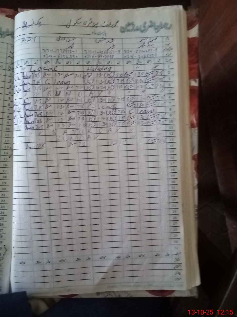 | Name: Qa**** AK**** Designation: (School Headmaster's/Headmistress's) PST Phone/Cell Number: 03**** |